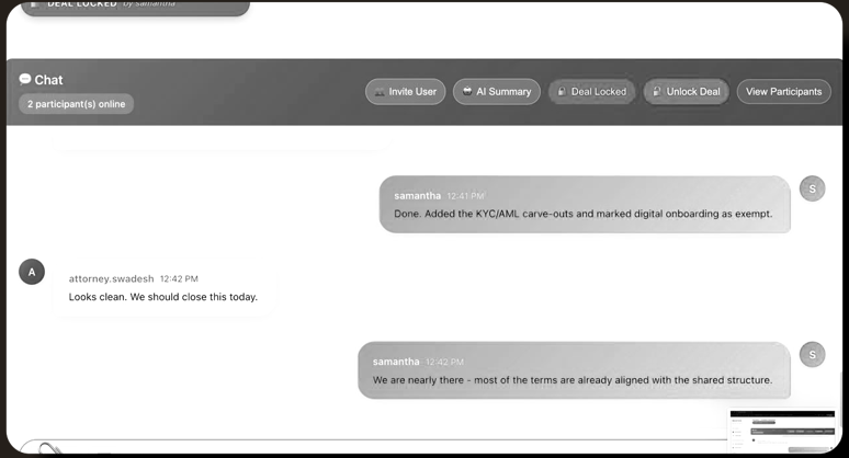 (Corem instantly converts highlights into contractual language — no legal ping-pong.)